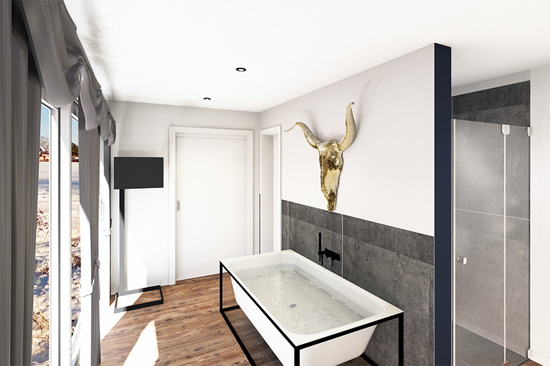 • Freistehende Badewanne mit schwarzem Gestell
